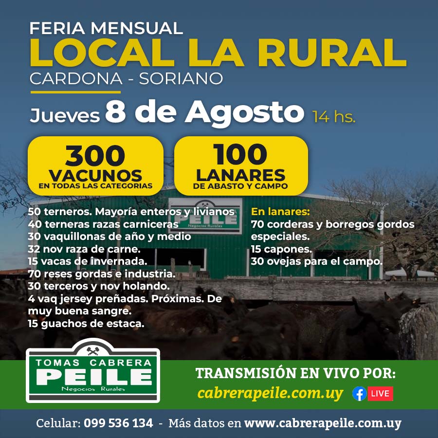 Este Miércoles 14 de Agosto, remate especial, desde el Club Fuerza Aérea de Montevideo se realizará el 212º Remate de Lote 21.