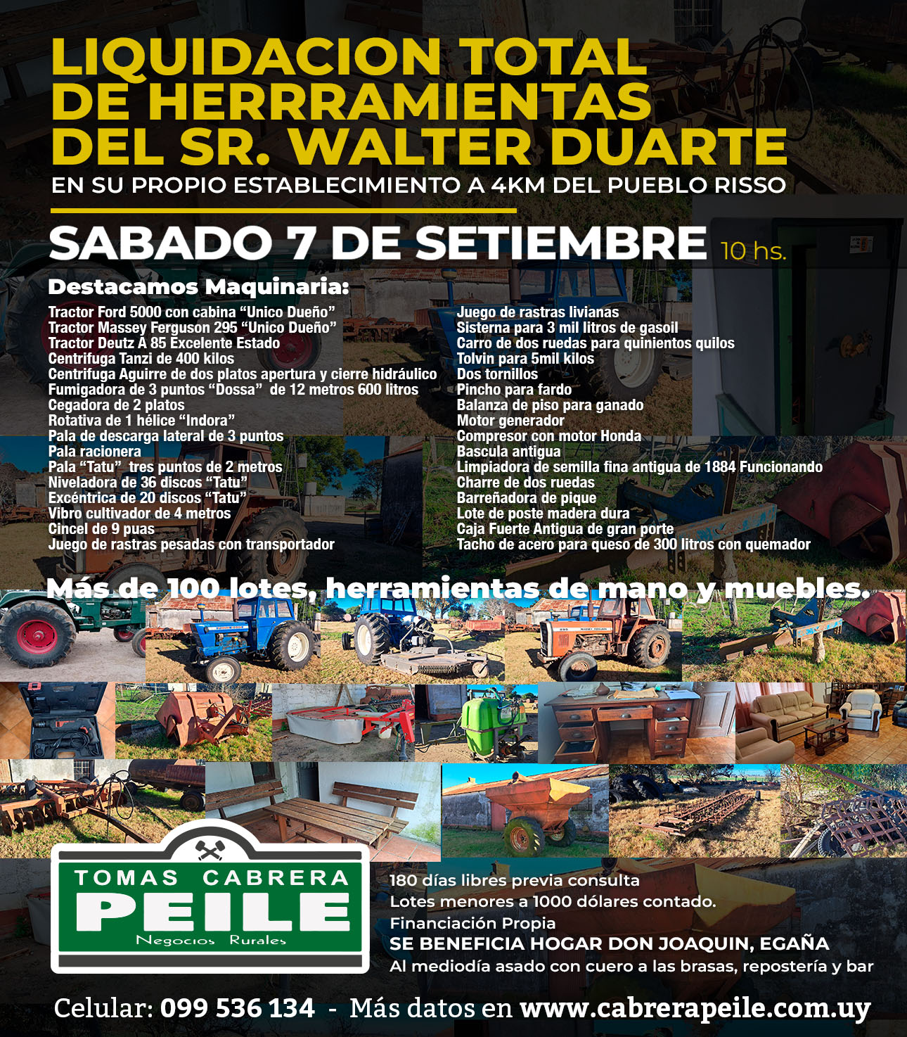 Más de 100 lotes, herramientas de mano y muebles.